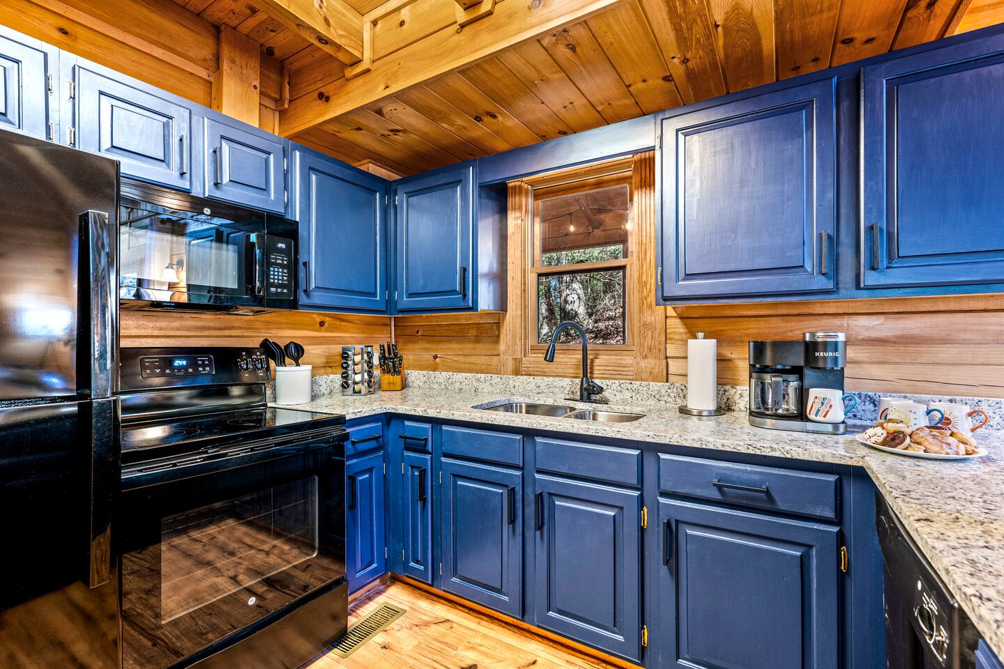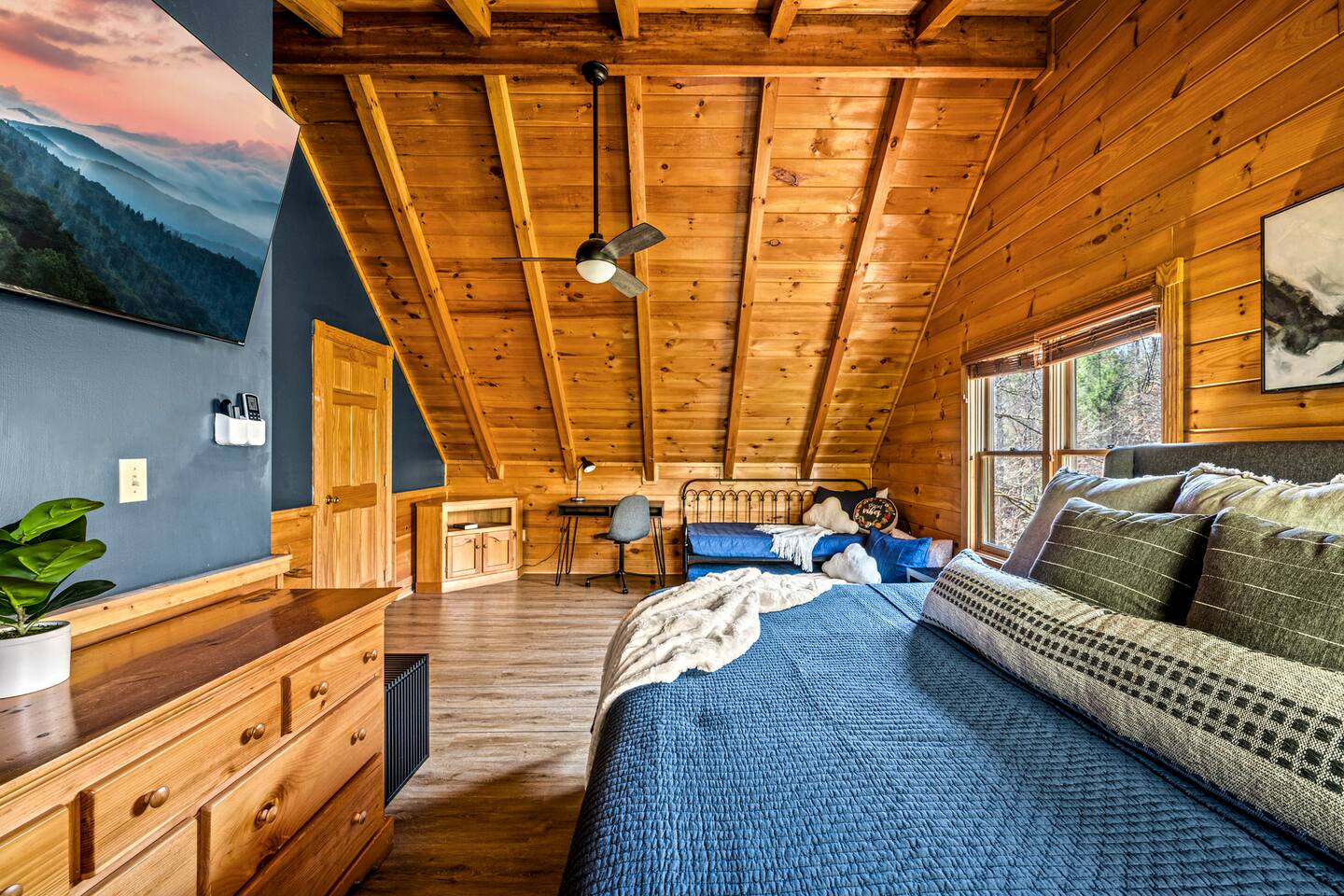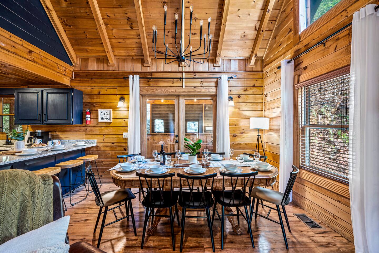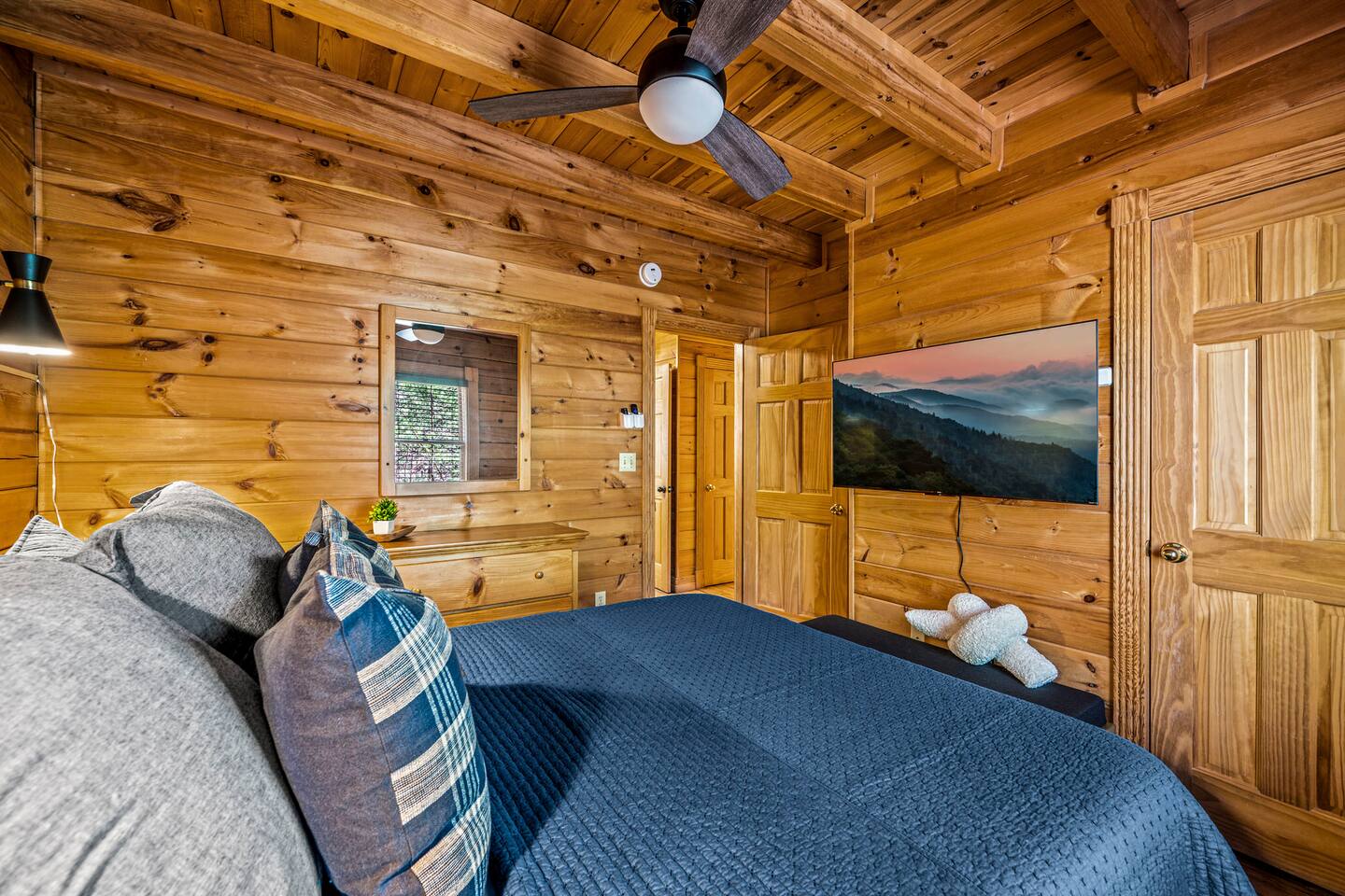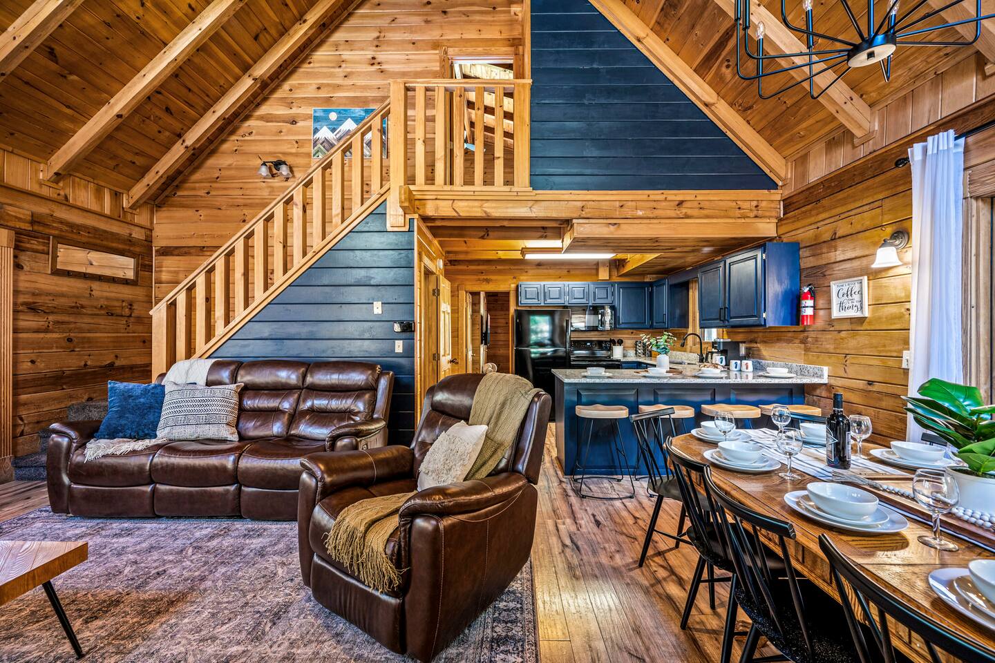 Good Vibes Cabin Pigeon Forge offers unbeatable location minutes to all attractions: ✓ The Island in Pigeon Forge (5 mins) ✓ LeConte Center (8 mins) ✓ Dollywood (13 mins) ✓ Pigeon Forge Snow (7 mins) ✓ Pigeon Forge Factory Outlet Mall (4 mins) ✓ Tanger Outlets Sevierville (8 mins) ✓ The Old Mill Restaurant (6 mins) ✓ Titanic Museum (6 mins) ✓ Smoky Mountain Alpine Coaster (7 mins) ✓ Dolly Parton's Stampede (7 mins) ✓ Wonderworks (8 mins) ✓ Anakeesta (16 mins) ✓ Ober Gatlinburg (20 mins) ✓ Rocky Top Sports World (24 mins) ✓ Laurel Falls Trailhead (28 mins) ✓ Great Smoky Mountains National Park (23 mins) * Note: Travel times may vary based on season and area occupancy. * As soon as you enter the majestic three-floor cabin, you're welcomed by a grand yet highly comfortable open-concept living area. Its unique setting and outstanding facilities will offer the levels of relaxation and convenience you are looking for in a vacation home. The fully equipped kitchen and inviting dining area open onto the pleasant living room with the intimate fireplace, setting the stage for many memorable evenings. Sun shines through large windows throughout the day, making the entire space bright and warm, enhancing the soothing ambiance under the majestic cathedral ceilings. Once you are ready to rest and relax, retreat to five cozy bedrooms where you can recharge after an exciting day of adventuring The Great Smoky Mountains. But wait! The best is yet to come – step out on the two covered porches to catch a breath of fresh mountain air and marvel at serene forest settings. The screened-in porch allows you to gaze at the surroundings from the luxurious hot tub while the designated BBQ master works their magic on the grill. When you’ve had enough of the great outdoors, you’ll be able to retreat to the basement theater room and have a fun movie night with your loved ones. There are endless options, and we can’t wait for you to experience them all! ★ THEATER/GAME ROOM ★ Come to the entertaining basement level to discover the private theater/game room. Let the posters on the wall inspire the movie choice that you‘ll get to watch in the great company of your family and friends. Be careful, though. You‘ll quickly lose track of time in this fun space! ✓ 86" Smart TV with Netflix ✓ Two-Row Theater Leather Seating ✓ Arcade Machine ✓ Coinless Candy Machine ✓ Air Hockey ✓ Cornhole ✓ Board Games ✓ Custom “Smoky Mountains” Mural ★ LIVING ROOM ★ It immediately feels like home! Cuddle up by the intimate fireplace, grab your favorite snacks and drinks, and spend precious moments with your friends in this contemporary open-concept space. ✓ Comfortable Leather Sofas ✓ Cathedral Ceilings ✓ Smart TV (Bring your own login) ✓ Indoor Fireplace (non-operational from April 1 - October 1) ✓ Coffee Table ✓ Stylish Reading Lamps ✓ Access to the Two Decks ★ KITCHEN & DINING ★ This kitchen is fully equipped with state-of-the-art cooking appliances that make it suitable for preparing any meal, whether a simple breakfast, quick snack, or a three-course gourmet dinner. Spacious granite countertops and the central kitchen island provide plenty of room to work your MasterChef magic. ✓ Microwave ✓ Stove ✓ Oven ✓ Toaster ✓ Blender ✓ Coffee Makers (Keurig, Drip Coffee Machine) ✓ Hot Water Kettle ✓ Refrigerator/Freezer ✓ Dishwasher ✓ Sink ✓ Glasses ✓ Silverware ✓ Pots & Pans The lovely dining area sits right next to the kitchen. Serve your delicious meals for the whole family at the dining table if you choose to stay in and enjoy a home-cooked meal. Tasty breakfasts, quick snacks, and smaller meals can be served directly on the kitchen bar. ✓ Dining Table with Seating for 10 ✓ Kitchen Counter with Seating for 4 ✓ Outdoor Dining with Seating for 4 ★ SLEEPING ARRANGEMENTS – 5 BEDROOMS ★ The charming cabin features five tastefully furnished bedrooms. All offer high levels of comfort and convenience through their layout and cozy beds. (No uncomfortable sofa beds here!) Pick your bedroom to relax and rest after a memorable day of adventuring throughout the rich natural settings of The Great Smoky Mountains. ♛ Master Bedroom (Top Floor): King-Size Bed + Twin Trundle, Ensuite Bathroom ♛ Bedroom 2 (Main Floor): Queen-Size Bed ♛ Bedroom 3 (Main Floor): Queen-Size Bed ♛ Bedroom 4 (Basement): King-Size Bed, Ensuite Bathroom ♛ Bedroom 5 (Basement): Bunk Bed (Twin over Full), Ensuite Bathroom All offer a similar set of amenities and furnishing: ✓ Pillows, Linens, and Sheets ✓ Smart TVs (Bring your own login) ✓ Dressers with Spacious Drawers ✓ Night Stands ★ 4 BATHROOMS ★ Three bedrooms offer private en-suite bathrooms, while the two main floor bedrooms share a bath. ✓ Bathtub / Shower Combo ✓ Walk-In Shower ✓ Vanity ✓ Mirror ✓ Toilet ✓ Towels ✓ Hair Dryer ★ OUTDOOR AREAS ★ A gorgeous cabin like this would not shine in its best light if it did not have private outdoor spaces where you can relax, enjoy the serenity of the scenic natural ambiance, and marvel at the forest views. Choose from two charming porches featuring comfy seating areas and a luxurious hot tub. ✓ Screened-In Porch (Luxury Hot Tub, BBQ Grill, Dining Table with Seating for 4, String Lights) ✓ Front Porch (Romantic Swing Bench and Rocking Chairs) We're excited for you to find your happy place in "Good Vibes Cabin Pigeon Forge". You might want to switch off for a bit, catch a movie, or just cuddle up on the couch with a great book by the fireplace. Head outside to sip some coffee, or chill in the hot tub and soak up the peaceful vibes. Let us know if you have any questions; we have the answers. Happy Travels!