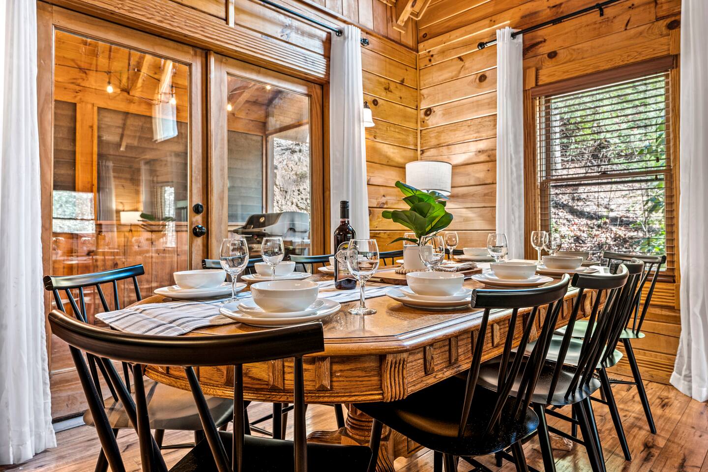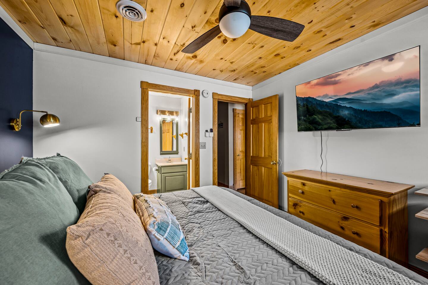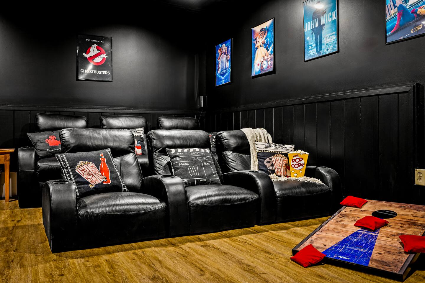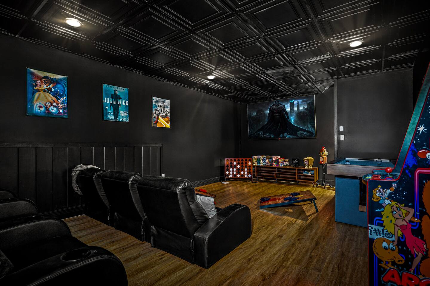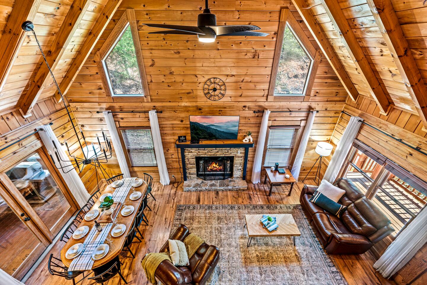 Good Vibes Cabin Pigeon Forge offers unbeatable location minutes to all attractions: ✓ The Island in Pigeon Forge (5 mins) ✓ LeConte Center (8 mins) ✓ Dollywood (13 mins) ✓ Pigeon Forge Snow (7 mins) ✓ Pigeon Forge Factory Outlet Mall (4 mins) ✓ Tanger Outlets Sevierville (8 mins) ✓ The Old Mill Restaurant (6 mins) ✓ Titanic Museum (6 mins) ✓ Smoky Mountain Alpine Coaster (7 mins) ✓ Dolly Parton's Stampede (7 mins) ✓ Wonderworks (8 mins) ✓ Anakeesta (16 mins) ✓ Ober Gatlinburg (20 mins) ✓ Rocky Top Sports World (24 mins) ✓ Laurel Falls Trailhead (28 mins) ✓ Great Smoky Mountains National Park (23 mins) * Note: Travel times may vary based on season and area occupancy. * As soon as you enter the majestic three-floor cabin, you're welcomed by a grand yet highly comfortable open-concept living area. Its unique setting and outstanding facilities will offer the levels of relaxation and convenience you are looking for in a vacation home. The fully equipped kitchen and inviting dining area open onto the pleasant living room with the intimate fireplace, setting the stage for many memorable evenings. Sun shines through large windows throughout the day, making the entire space bright and warm, enhancing the soothing ambiance under the majestic cathedral ceilings. Once you are ready to rest and relax, retreat to five cozy bedrooms where you can recharge after an exciting day of adventuring The Great Smoky Mountains. But wait! The best is yet to come – step out on the two covered porches to catch a breath of fresh mountain air and marvel at serene forest settings. The screened-in porch allows you to gaze at the surroundings from the luxurious hot tub while the designated BBQ master works their magic on the grill. When you’ve had enough of the great outdoors, you’ll be able to retreat to the basement theater room and have a fun movie night with your loved ones. There are endless options, and we can’t wait for you to experience them all! ★ THEATER/GAME ROOM ★ Come to the entertaining basement level to discover the private theater/game room. Let the posters on the wall inspire the movie choice that you‘ll get to watch in the great company of your family and friends. Be careful, though. You‘ll quickly lose track of time in this fun space! ✓ 86" Smart TV with Netflix ✓ Two-Row Theater Leather Seating ✓ Arcade Machine ✓ Coinless Candy Machine ✓ Air Hockey ✓ Cornhole ✓ Board Games ✓ Custom “Smoky Mountains” Mural ★ LIVING ROOM ★ It immediately feels like home! Cuddle up by the intimate fireplace, grab your favorite snacks and drinks, and spend precious moments with your friends in this contemporary open-concept space. ✓ Comfortable Leather Sofas ✓ Cathedral Ceilings ✓ Smart TV (Bring your own login) ✓ Indoor Fireplace (non-operational from April 1 - October 1) ✓ Coffee Table ✓ Stylish Reading Lamps ✓ Access to the Two Decks ★ KITCHEN & DINING ★ This kitchen is fully equipped with state-of-the-art cooking appliances that make it suitable for preparing any meal, whether a simple breakfast, quick snack, or a three-course gourmet dinner. Spacious granite countertops and the central kitchen island provide plenty of room to work your MasterChef magic. ✓ Microwave ✓ Stove ✓ Oven ✓ Toaster ✓ Blender ✓ Coffee Makers (Keurig, Drip Coffee Machine) ✓ Hot Water Kettle ✓ Refrigerator/Freezer ✓ Dishwasher ✓ Sink ✓ Glasses ✓ Silverware ✓ Pots & Pans The lovely dining area sits right next to the kitchen. Serve your delicious meals for the whole family at the dining table if you choose to stay in and enjoy a home-cooked meal. Tasty breakfasts, quick snacks, and smaller meals can be served directly on the kitchen bar. ✓ Dining Table with Seating for 10 ✓ Kitchen Counter with Seating for 4 ✓ Outdoor Dining with Seating for 4 ★ SLEEPING ARRANGEMENTS – 5 BEDROOMS ★ The charming cabin features five tastefully furnished bedrooms. All offer high levels of comfort and convenience through their layout and cozy beds. (No uncomfortable sofa beds here!) Pick your bedroom to relax and rest after a memorable day of adventuring throughout the rich natural settings of The Great Smoky Mountains. ♛ Master Bedroom (Top Floor): King-Size Bed + Twin Trundle, Ensuite Bathroom ♛ Bedroom 2 (Main Floor): Queen-Size Bed ♛ Bedroom 3 (Main Floor): Queen-Size Bed ♛ Bedroom 4 (Basement): King-Size Bed, Ensuite Bathroom ♛ Bedroom 5 (Basement): Bunk Bed (Twin over Full), Ensuite Bathroom All offer a similar set of amenities and furnishing: ✓ Pillows, Linens, and Sheets ✓ Smart TVs (Bring your own login) ✓ Dressers with Spacious Drawers ✓ Night Stands ★ 4 BATHROOMS ★ Three bedrooms offer private en-suite bathrooms, while the two main floor bedrooms share a bath. ✓ Bathtub / Shower Combo ✓ Walk-In Shower ✓ Vanity ✓ Mirror ✓ Toilet ✓ Towels ✓ Hair Dryer ★ OUTDOOR AREAS ★ A gorgeous cabin like this would not shine in its best light if it did not have private outdoor spaces where you can relax, enjoy the serenity of the scenic natural ambiance, and marvel at the forest views. Choose from two charming porches featuring comfy seating areas and a luxurious hot tub. ✓ Screened-In Porch (Luxury Hot Tub, BBQ Grill, Dining Table with Seating for 4, String Lights) ✓ Front Porch (Romantic Swing Bench and Rocking Chairs) We're excited for you to find your happy place in "Good Vibes Cabin Pigeon Forge". You might want to switch off for a bit, catch a movie, or just cuddle up on the couch with a great book by the fireplace. Head outside to sip some coffee, or chill in the hot tub and soak up the peaceful vibes. Let us know if you have any questions; we have the answers. Happy Travels!
